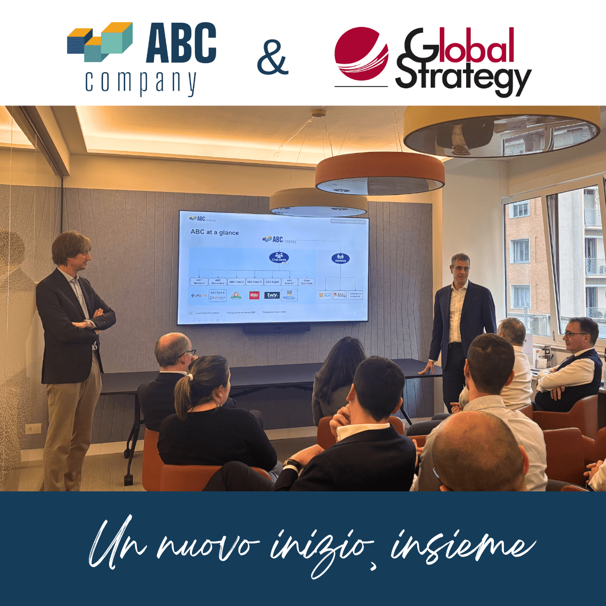 A seguito del closing dell’operazione con Global Strategy, ABC Company ha voluto celebrare questo passaggio con un momento di accoglienza presso i propri uffici, che da oggi ospitano anche il team della società.