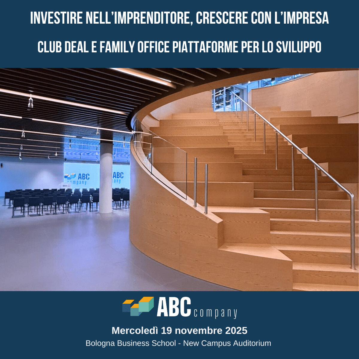 Il 19 novembre 2025, presso la Bologna Business School, si รจ svolta una nuova tappa del Roadshow promosso da ABC Company e Giotto Cellino SIM, dedicata a imprenditori, investitori e family office.